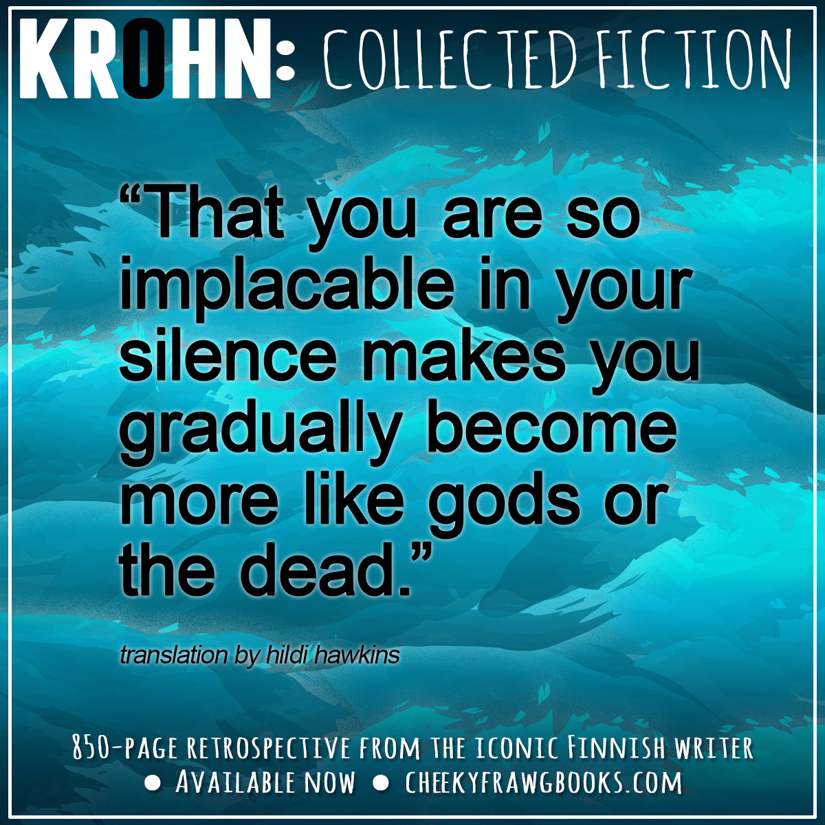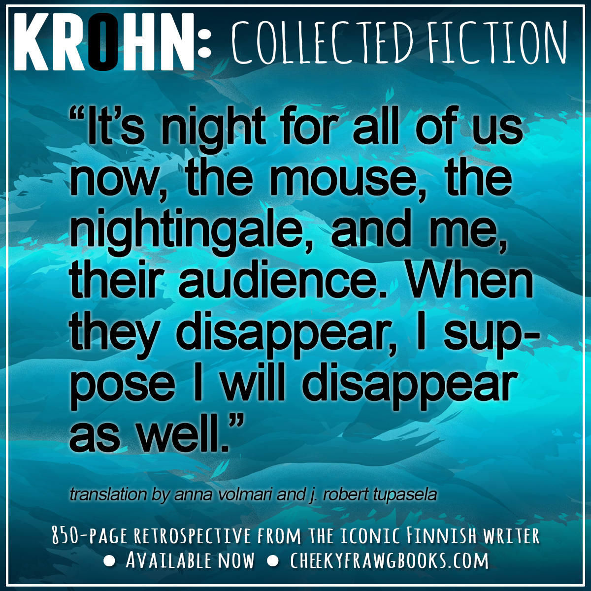 On a personal note, we should add that we are passionate advocates for Leena Krohn: Collected Fiction. Krohn’s work is deeply relevant to the times we live in, the perspective always thoughtful and lively and deep. You will find in her work ideas, situations, and characters that are unique in literature.